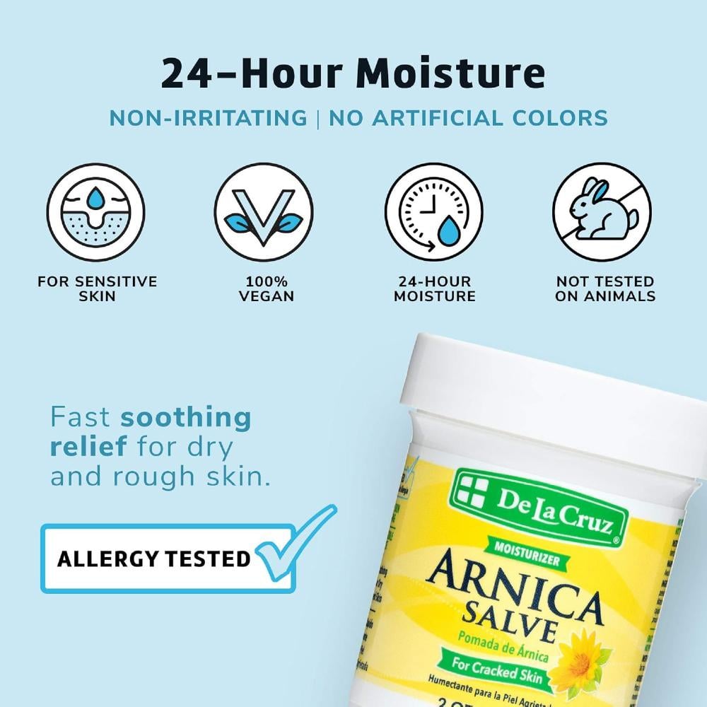 De La Cruz Arnica Salve - كريم القدم للأقدام الجافة والمتشققة ومرهم اليدين المرطب لليدين الجافة، يوفر ترطيبًا لمدة 24 ساعة للبشرة الجافة والخشنة