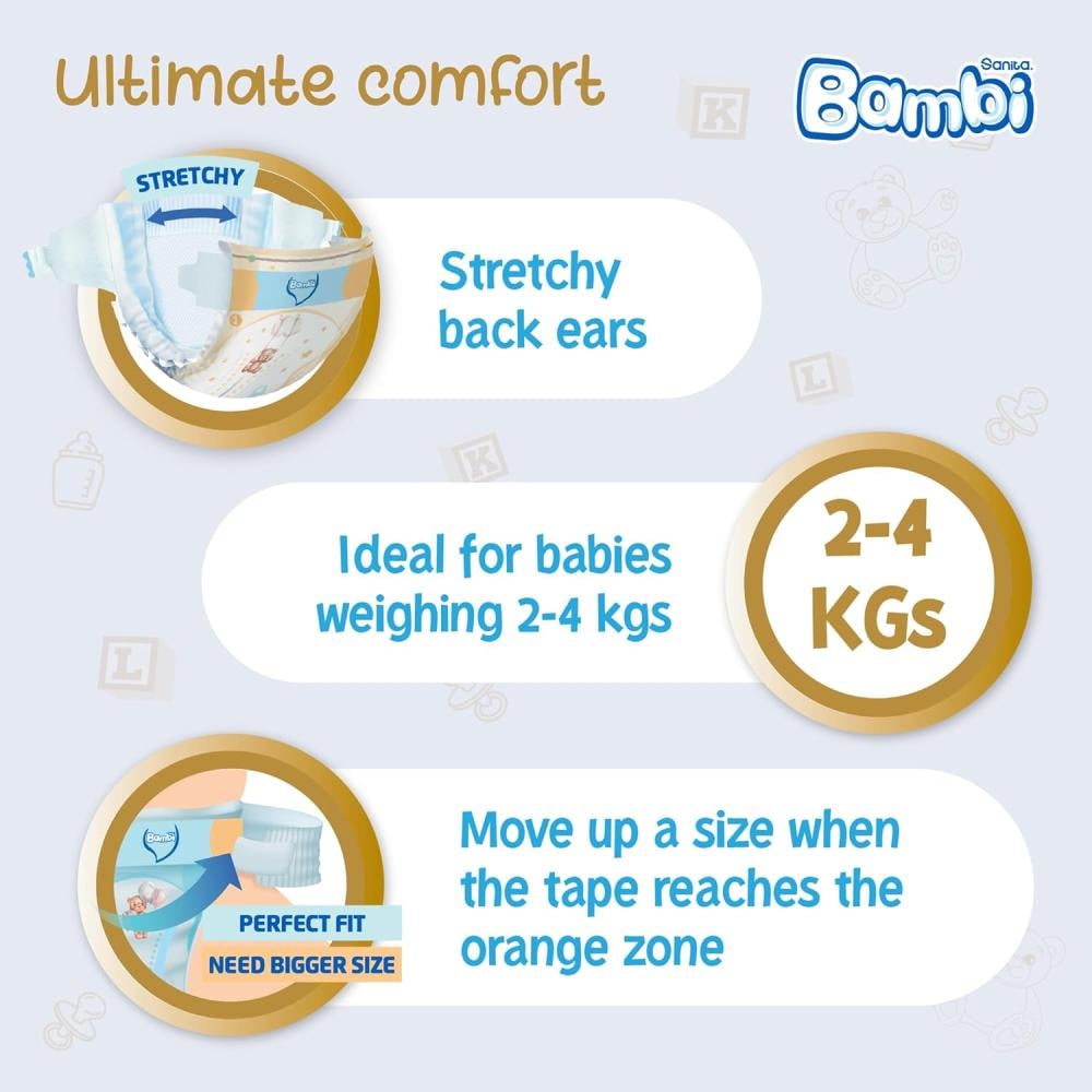 SANITA BAMBI PREMIUM SOFT TOUCH BABY DIAPERS SUPER PACK NO1 2-4 KG 168 DIAPERS سانيتا بامبي بريميوم حفاضات الاطفال عناية و نعومة الصندوق السوبر رقم 1 من 2-4 كيلو 168 حفاض