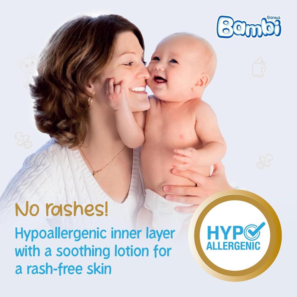 تم تصميم حفاضات سانيتا بامبي بعناية لحماية منطقة الحبل السري الحساسة لدى حديثي الولادة. المواد الناعمة والقابلة للتنفس توفر ملاءمة محكمة وطبقة داخلية مضادة للحساسية مع لوشن مهدئ لضمان عدم حدوث طفح جلدي.