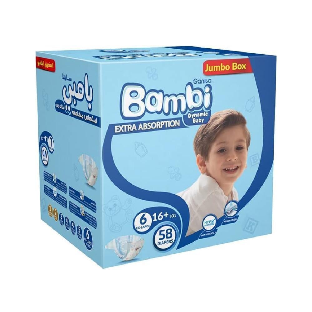 سانيتا بامبي حفاضات الأطفال امتصاص مضاعف الصندوق الجامبوXXL كبير رقم 6 16كيلو وفوق 58 حفاض
