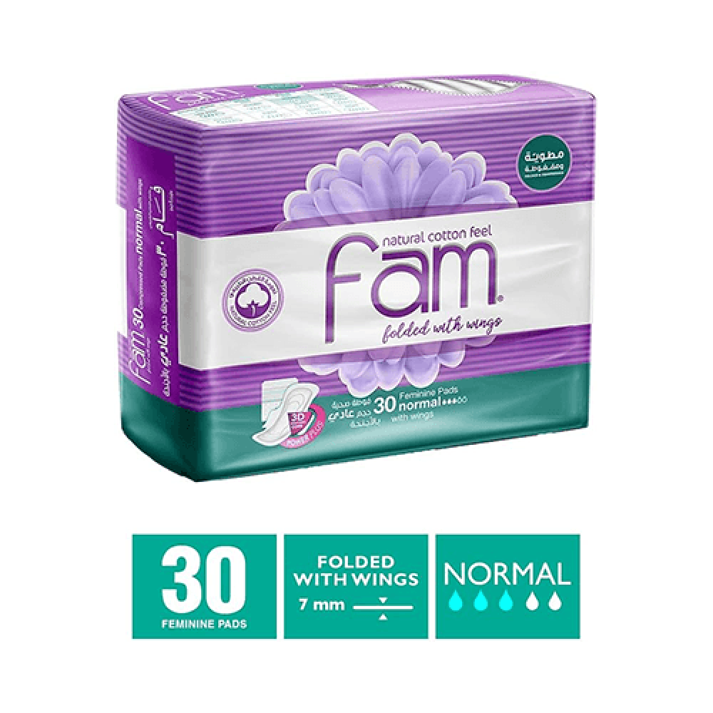 فام فوط صحية مطوية بالاجنحة حجم عادي 30فوطة