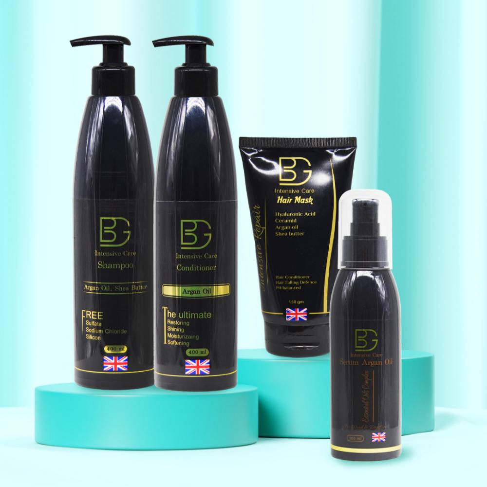 -بي جي شامبو العنايه المركزة بزيت الارجان وزبدة الشيا خالى من السلفات 400 مل :