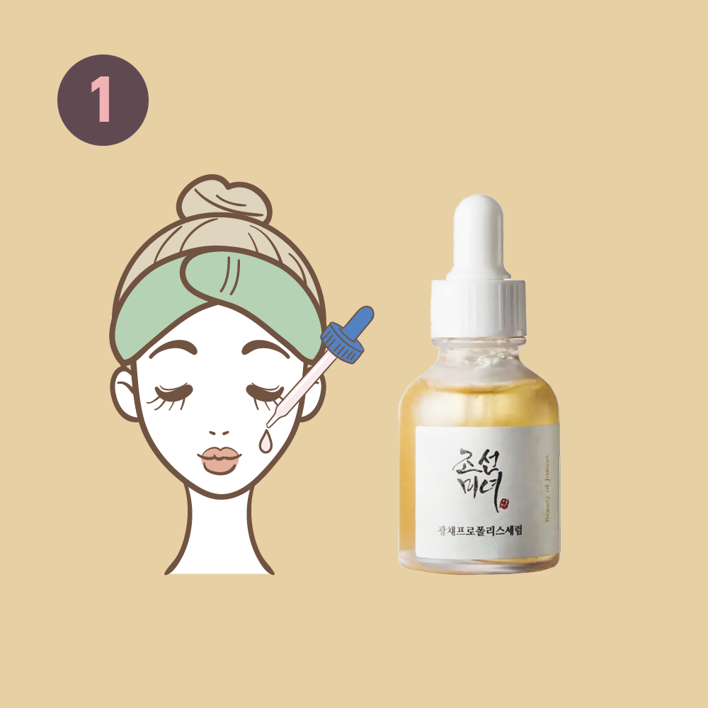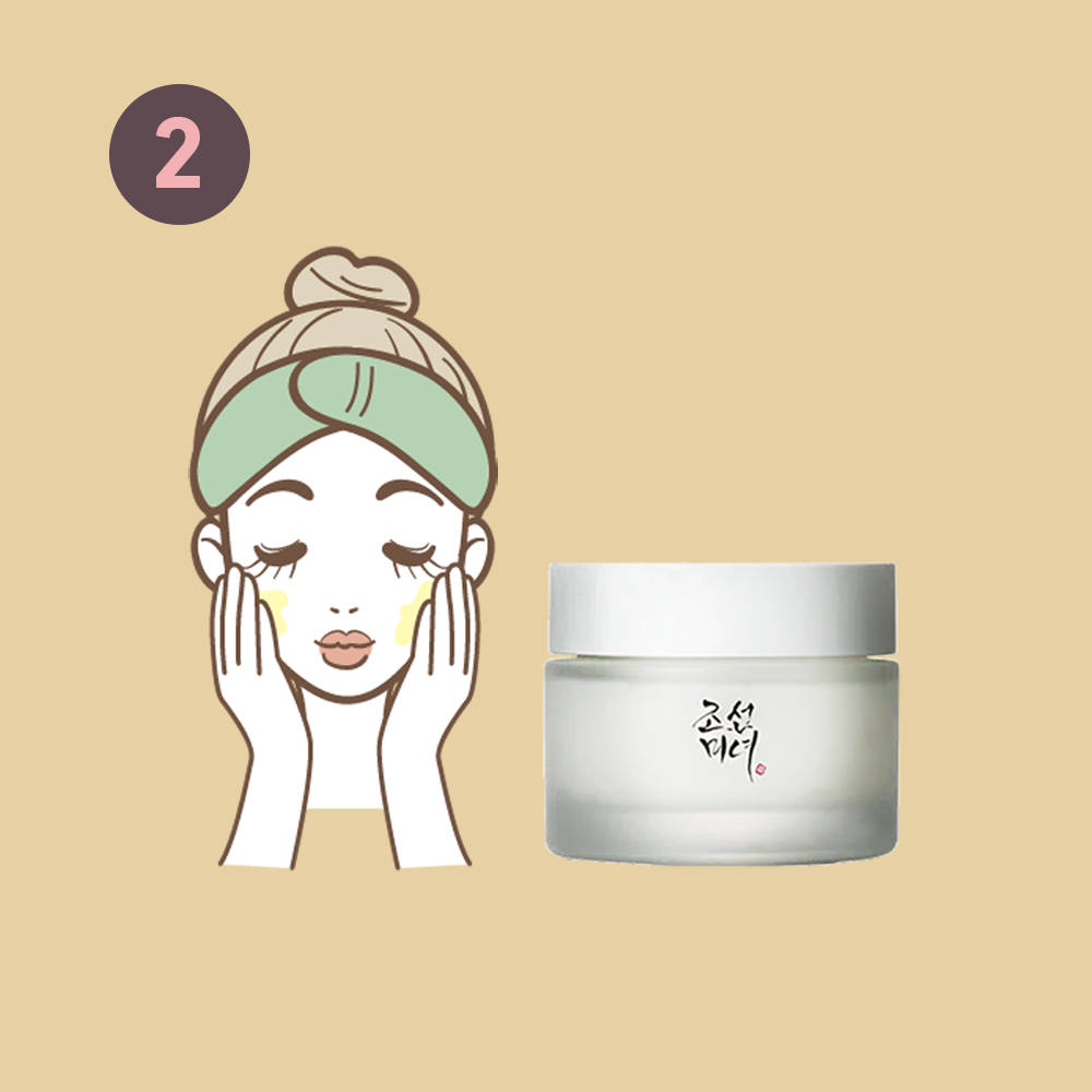 ابدئي بوجه نظيف قبل وضع بضع قطرات من السيروم ، وربتي عليه برفق على وجهك ورقبتك حتى يتم امتصاصه. اتبعيه بكمية مناسبة من كريم داينستي ، ودلكيه بحركات دائرية تصاعدية لحبس الرطوبة.