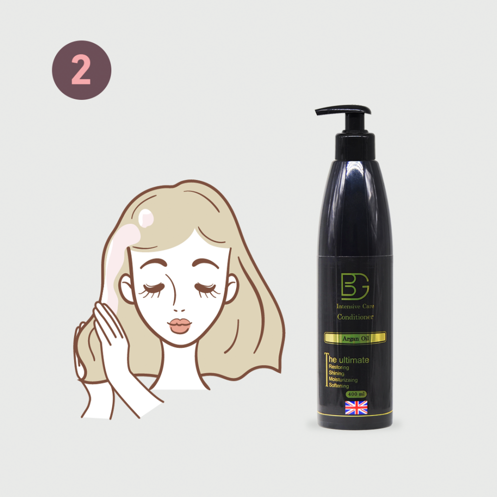 - يتم وضع كمية صغيرة من البلسم على الشعر إبتداء من الجذور، يترك على الشعر من ٥ الى 7 دقائق