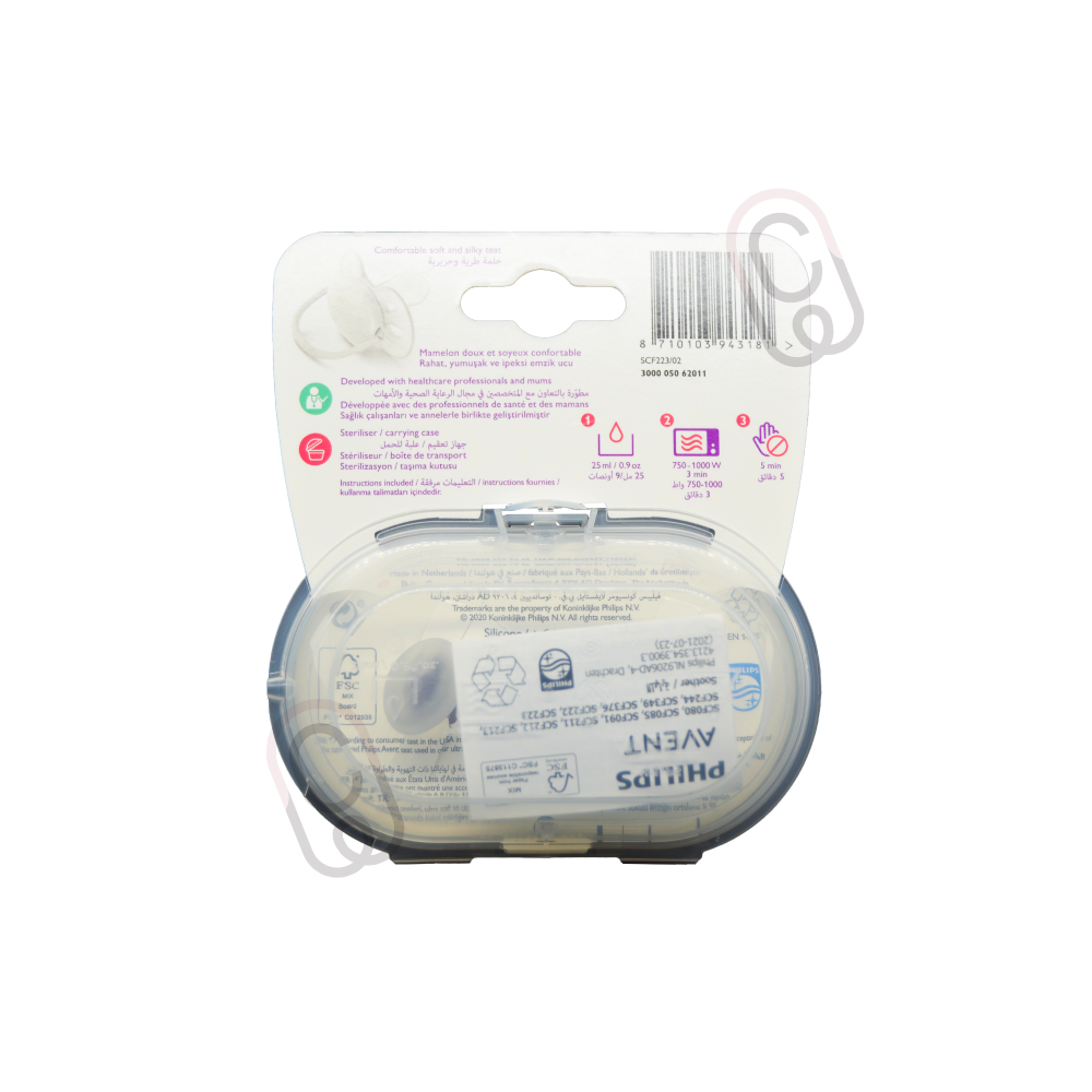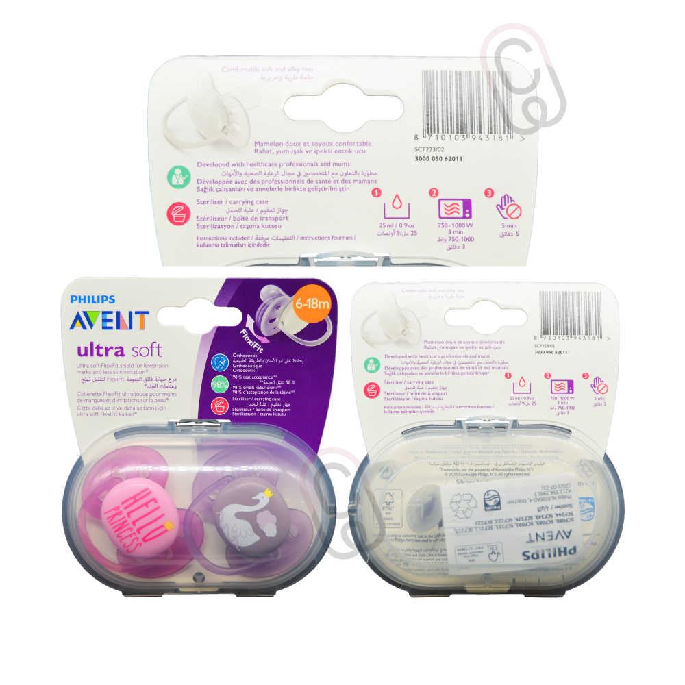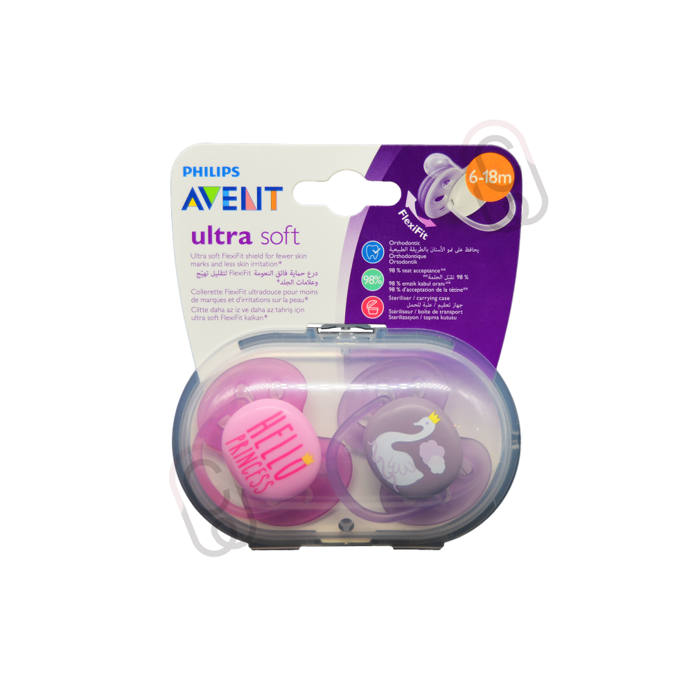 تتميز أفنت الترا سوفت لهاية 6-18 شهر بنات بملمسها الناعم وخفة وزنها، مما يجعلها مناسبة تماماً لطفلتك في هذه المرحلة العمرية. صممت اللهاية بنمط أورتودونتي يدعم نمو الفم والأسنان بشكل طبيعي، مع تصميم يلائم فم الطفل لتوفير راحة دائمة. اللهاية مصنوعة من مواد آمنة وخالية من مادة BPA، مما يضمن سلامة طفلتك ويتيح تهدئة طبيعية.