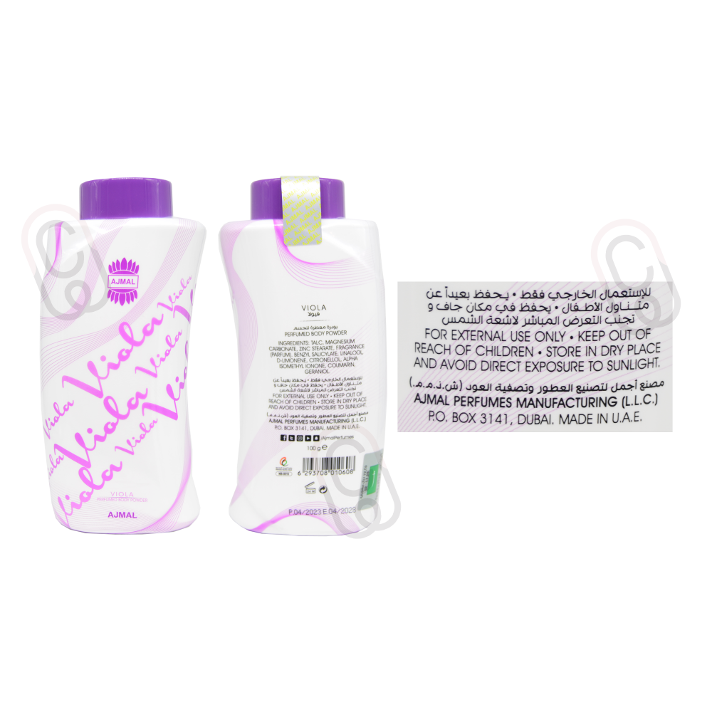 بودرة الجسم فيولا هي عطر مكثف , جذاب. يجمع هذا العطر الرائع بين مجموعة واسعة من الروائح المنعشة والمبهجة. إبداع عصري تثير مكوناته جاذبية فريدة وغير عادية تحتوي المكونات العليا فيه على روائح الفواكه الطازجة التي تتداخل مع عطور خشبية مائية لعلها الأجمل والأكثر حيوية على الإطلاق يتكوّن الجزء العلوي والقلب إلى قاعدة رائعة مليئة بالعنبر والبتشولي الدافئ يضيفان عليها إبداعاً وسحراً