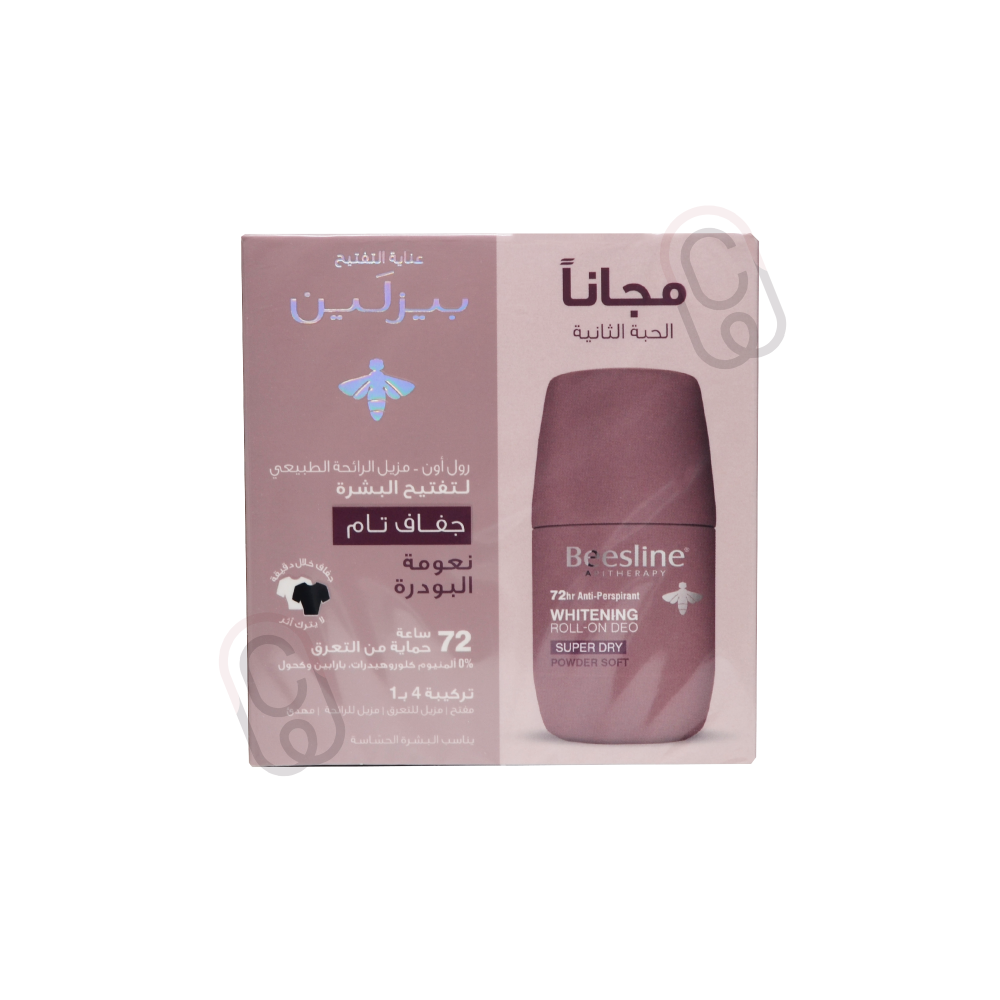 BEESLINE WHITENING ROLL-ON DEO 72 HRS SUPER DRY POWDER SOFT FOR WOMEN-50ML1+1FREE